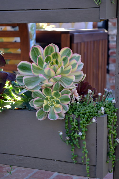 Warnanya yang pucat dapat membingkai sukulen utama yang berwarna cerah.