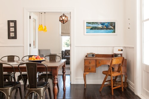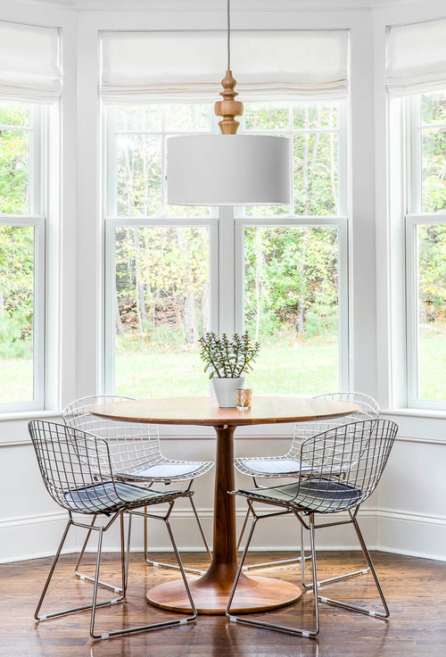 Kursi makan tidak perlu merupakan kursi yang nyaman dan mahal, apalagi kalau kamu adalah tipe yang makan cepat lalu langsung pindah bersantai di ruang keluarga atau kamar tidur. Untuk rumah baru ini, kamu bisa membeli kursi outdoor yang masih terlihat cantik untuk diletakkan di dalam rumah. Gunakan yang berbahan metal atau polypropylene (plastik) dengan lubang-lubang di alas duduknya agar air hujan tidak akan menggenanginya nanti. Kursi makan saat ini, kursi teras di masa depan.